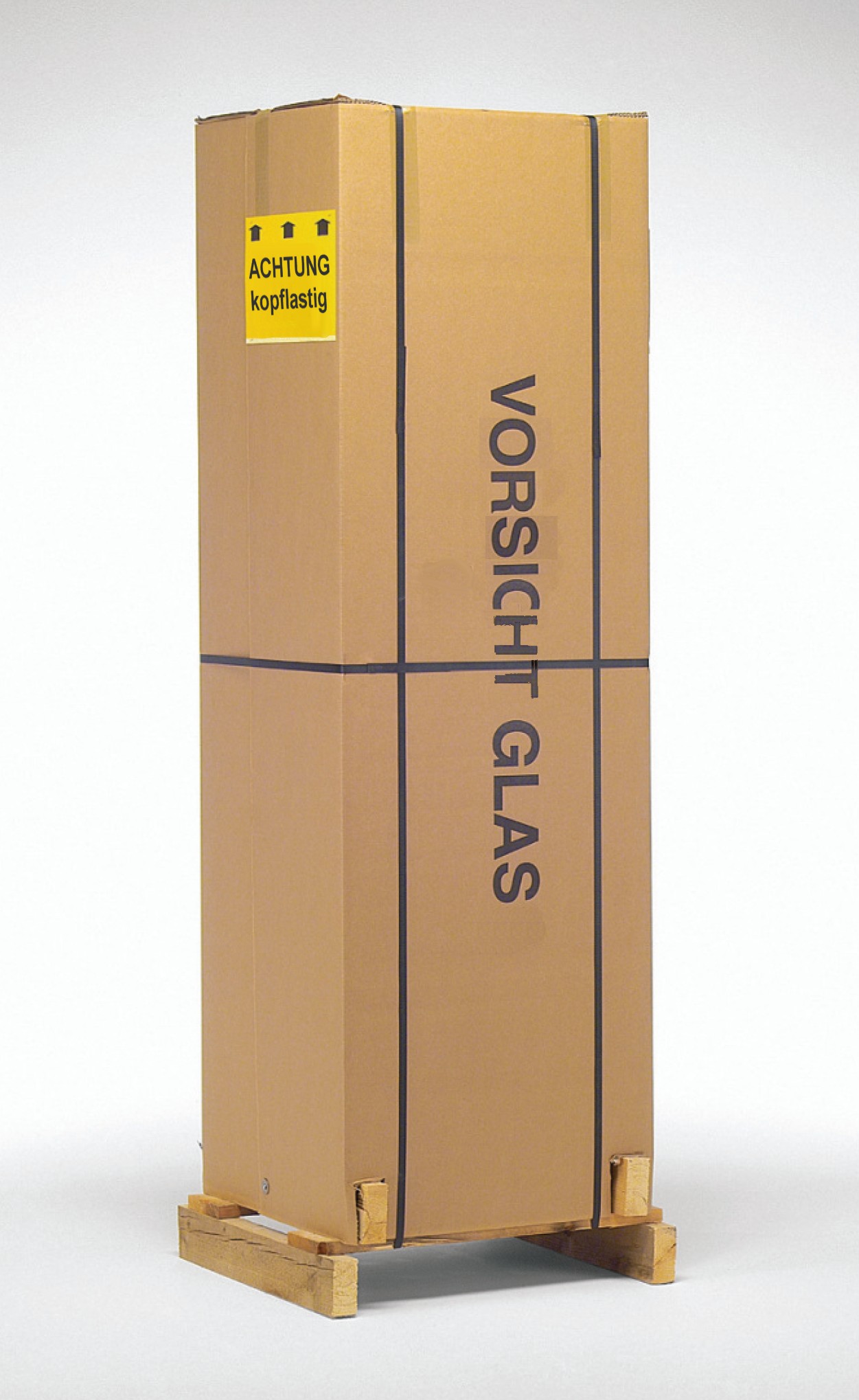 | Lieferung | Die Anlieferung erfolgt stehend, verpackt auf einer Einwegpalette. Nach dem Öffnen der Außenkartonage können Sie die seitlich angebrachten Fachböden abtransportieren, bevor Sie die Vitrine an Ort und Stelle verbringen |