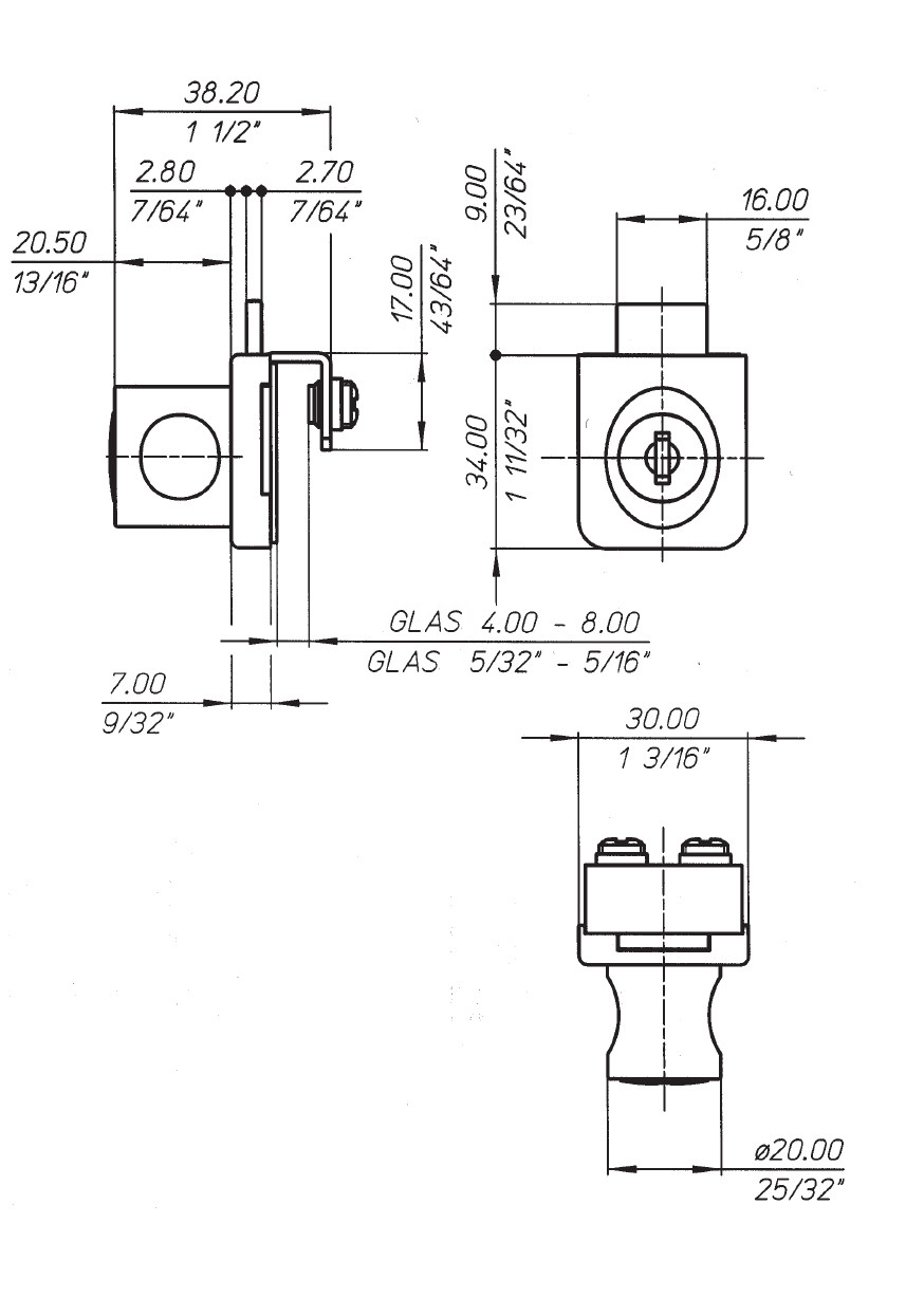 für Glas-/Holz-/Acrylglastüren von 4 bis 8 mm Materialstärke
