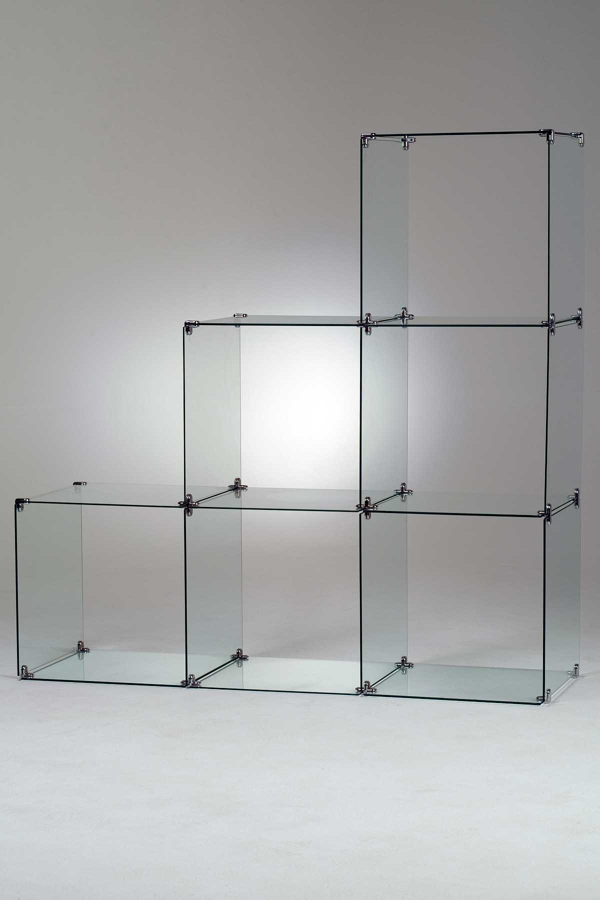 Unsere Selbstbauvitrinen können aufgrund unserer Glasplatten aus ESG-Sicherheitsglas mit 5 mm Materialstärke problemlos ohne Rückwand aufgebaut werden. Bei Systemen mit Materialstärke 4 mm ist eine Rückwand ratsam. Die mitgelieferten Metallverbinder sind aus chromfarbigen Zink-Druckguss und für Platten von 3-5 mm Materialstärke geeignet. Bei den optional angebotenen Türen sind die Scharniere, das Schloss und der Türanschlag bereits im Lieferumfang enthalten. Doppeltüren schließen 2 übereinanderliegende Fächer. Die Lieferung erfolgt zerlegt zur Selbstmontage. Für den Aufbau wird nur ein handelsüblicher Schlitzschraubenzieher (breit) benötigt.